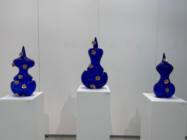 The installation features intricate and highly textured ceramic sculptures earthy, crusted, radiant and sparkling. Apothecary vessel-like forms, mystical figures, and glass ancestral guardians, reinvigorate art historical norms to suggest a woman-empowered world of magic and wonder; an escape into a luminous alchemy of cosmic visionary consciousness.